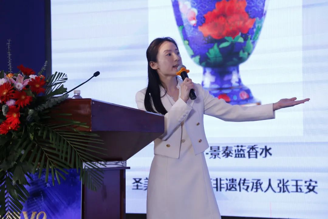 大会第三阶段,四家江苏省著名品牌代表——国缘V9、圣美伦香水、涵田旅投、高淳陶瓷在大会上还进行了品牌发布。