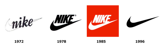 Nike可以说在全世界家喻户晓,但Nike在成立之初,并没有设计出非常漂亮的标识。1971年,Nike对标记作了重大改动,标识并非出自名家手笔,而是由一位名不见经传、名叫戴维逊的学生所设计,据说设计费只用了35美元,但戴维逊也估不到如此的设计竟然成为了一代经典!1978年,Nike又对标识作了进一步改进,将小写的nike改写成大写NIKE,放在”勾子“形状的一划之上,并将勾子填充红色,这一修改堪称经典中的经典,令人印象深刻。后来,Nike将标识改成红底白字、白色的勾子,让消费者始终联想起网球运动。考虑到Nike已经深入人心,1996年Nike又对品牌标识作了改进,这一次是连名牌名都去掉了!而且,近年来NIKE均以黑色"勾子"作广告,有型又有格。